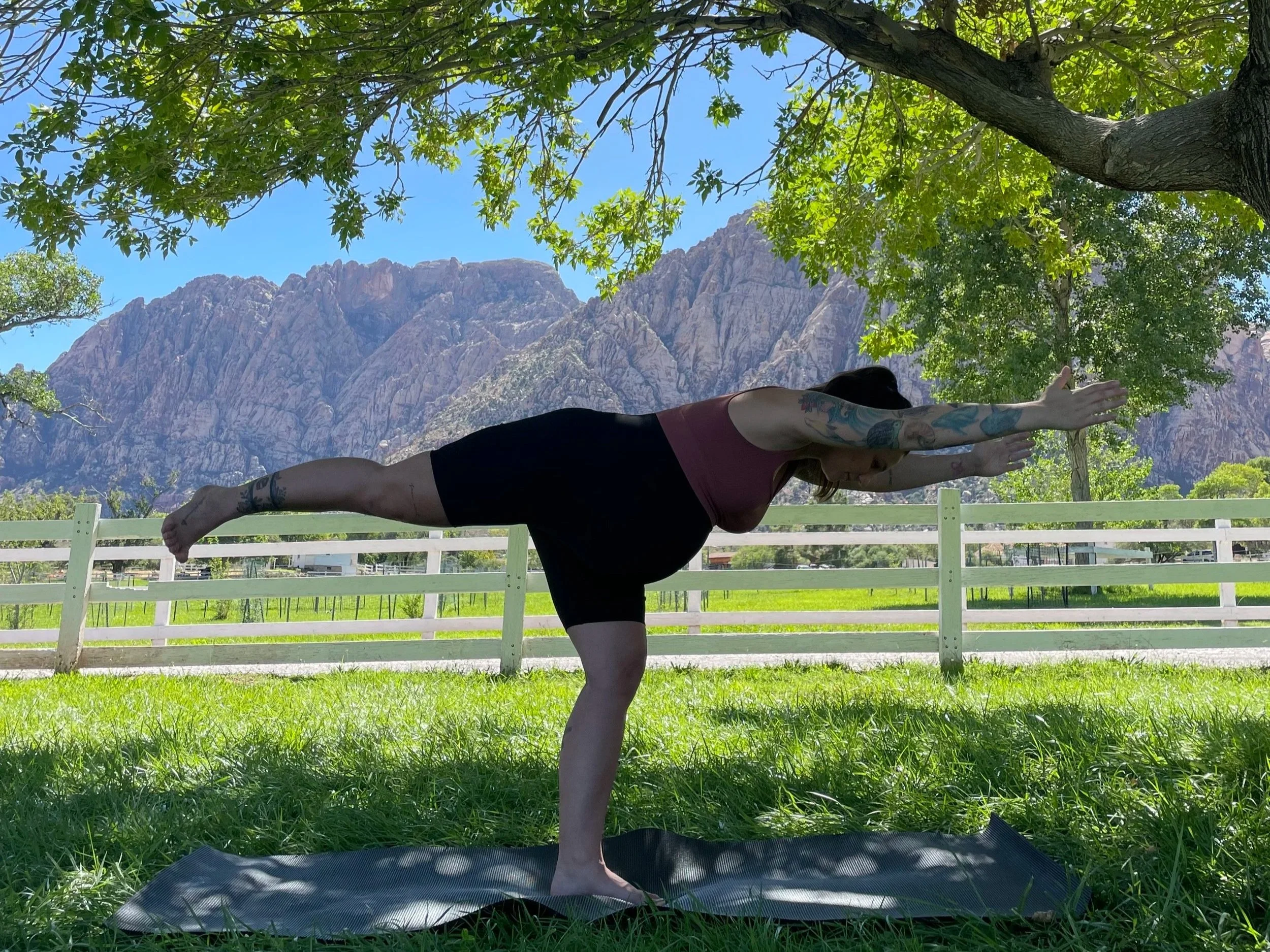 Flavia's journey with Yoga started when she was 15 years old, attending yoga classes in her hometown back in Brazil along with her mom, a very important person in her journey of self-knowledge and continuous studies. After many years as a practitioner, she graduated from her 200-hr RYT course in December 2022 with Tales Nunes from Vida de Yoga - Brazil. Right after graduating, in January 2023, she found out she's expecting her first child. Since then, she's been diving into the parenting universe, learning the nuances of prenatal and postpartum with PYLV Prenatal Yoga School, 85-hr RPYT course, reading books, and sharing experiences with the community from Las Vegas, where she lives now with her husband.